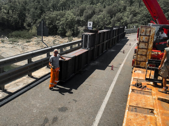 The intervention firstly consisted in enhancing and ensuring span safety by placement of a steel beam shoring up the severely damaged original beam. Then, the damaged beam and other similarly deteriorated beams have been restored by a twofold action of concrete jacketing and external prestressing through cables equipped with load cells for an ongoing stresses monitoring and data collection.